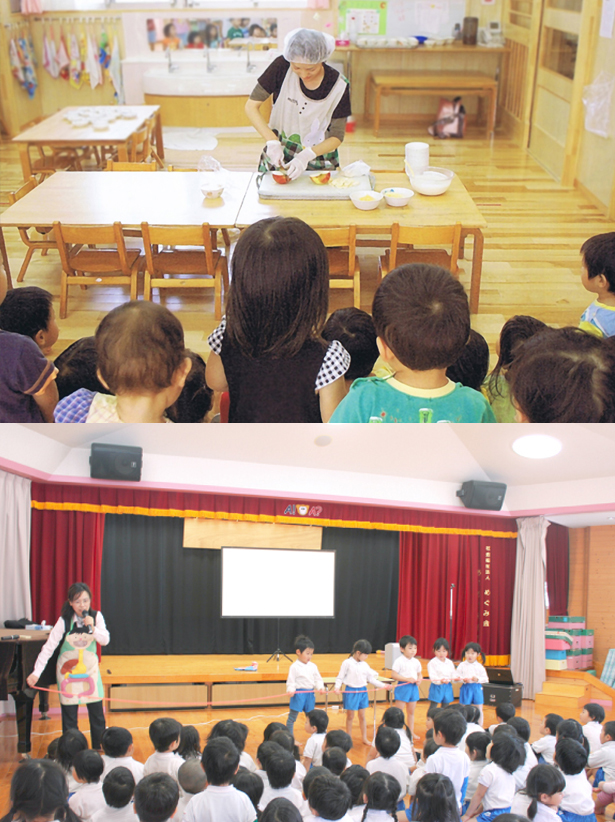 月に二度、音楽の先生により発声やリズムなどを楽しんでいます。 |