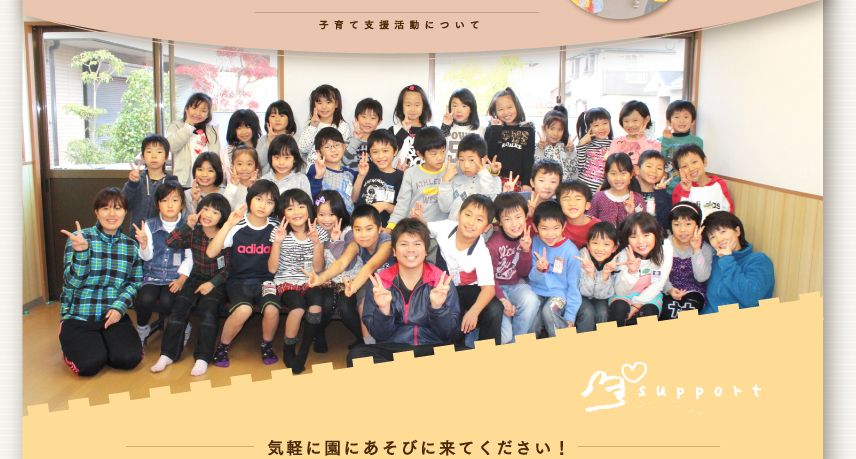 ご家庭でお子さんをみている保護者の方が、仕事・学業・介護・病気・出産などで保育が出来なくなったとき、一時的にお子さんをお預かりします。(月に14日間を限度にお預かりいたします)